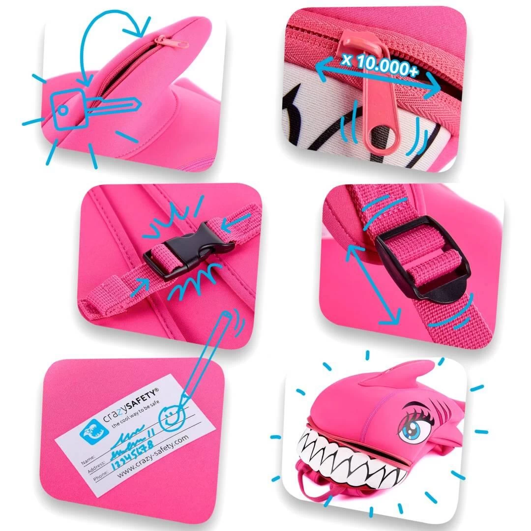 A unique backpack for nursery, kindergarten or primary school. Ideal for kids aged 2-6 years! Made in sturdy neoprene, with name tag, secret pocket, and adjustable straps. Safety tested.