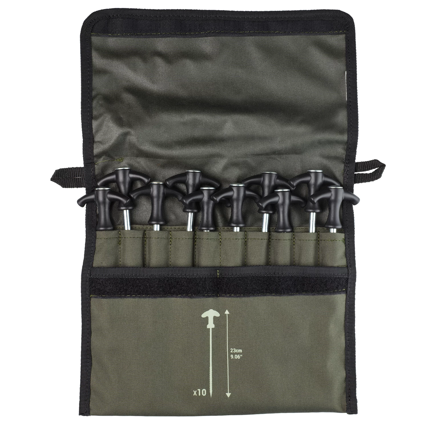 24 cm screw-in pegs designed for carp anglers wanting to firmly anchor their shelter to the ground. Pegs supplied in a carry pouch.Set of 10 screw-in pegs to securely anchor your bivvy or brolly to the ground.
