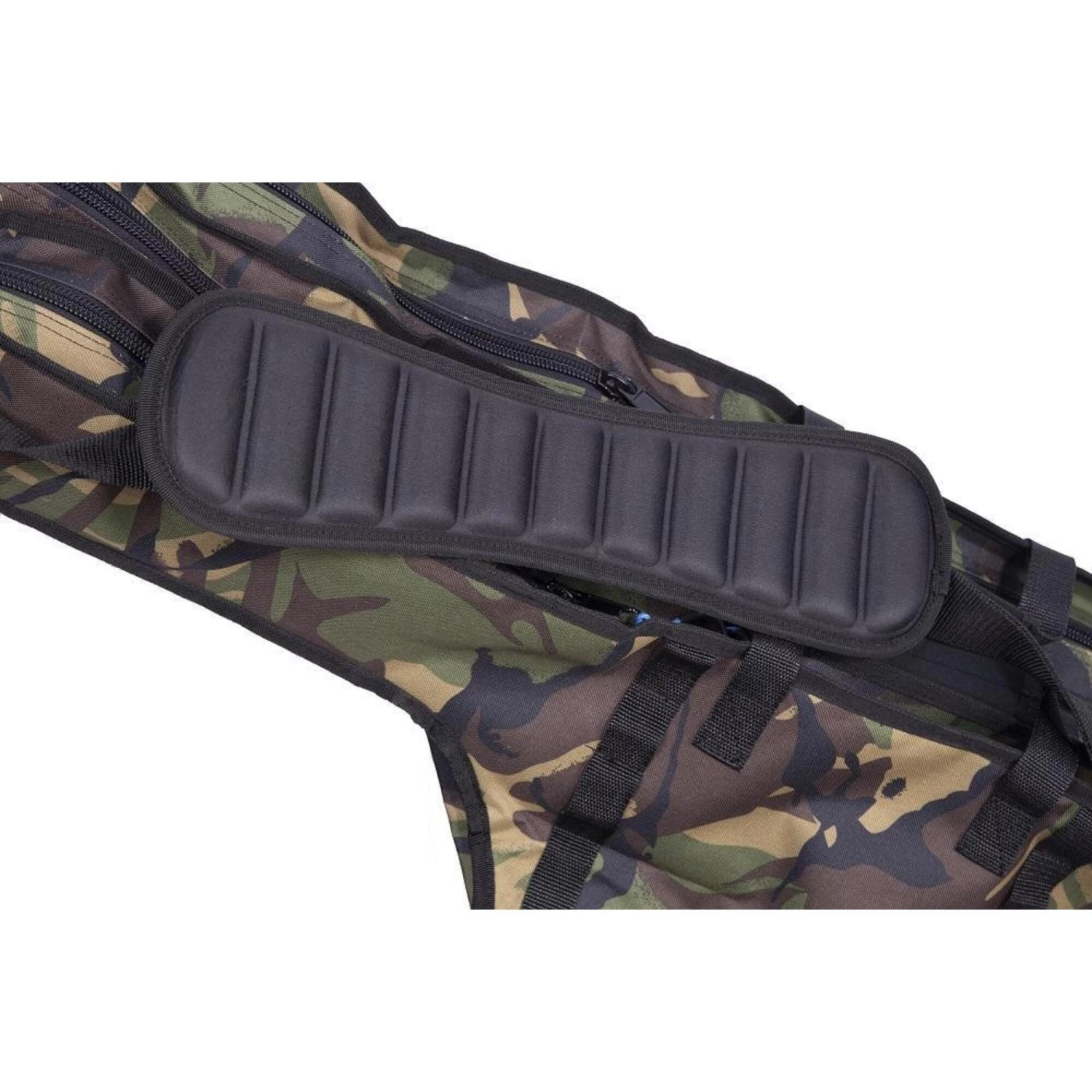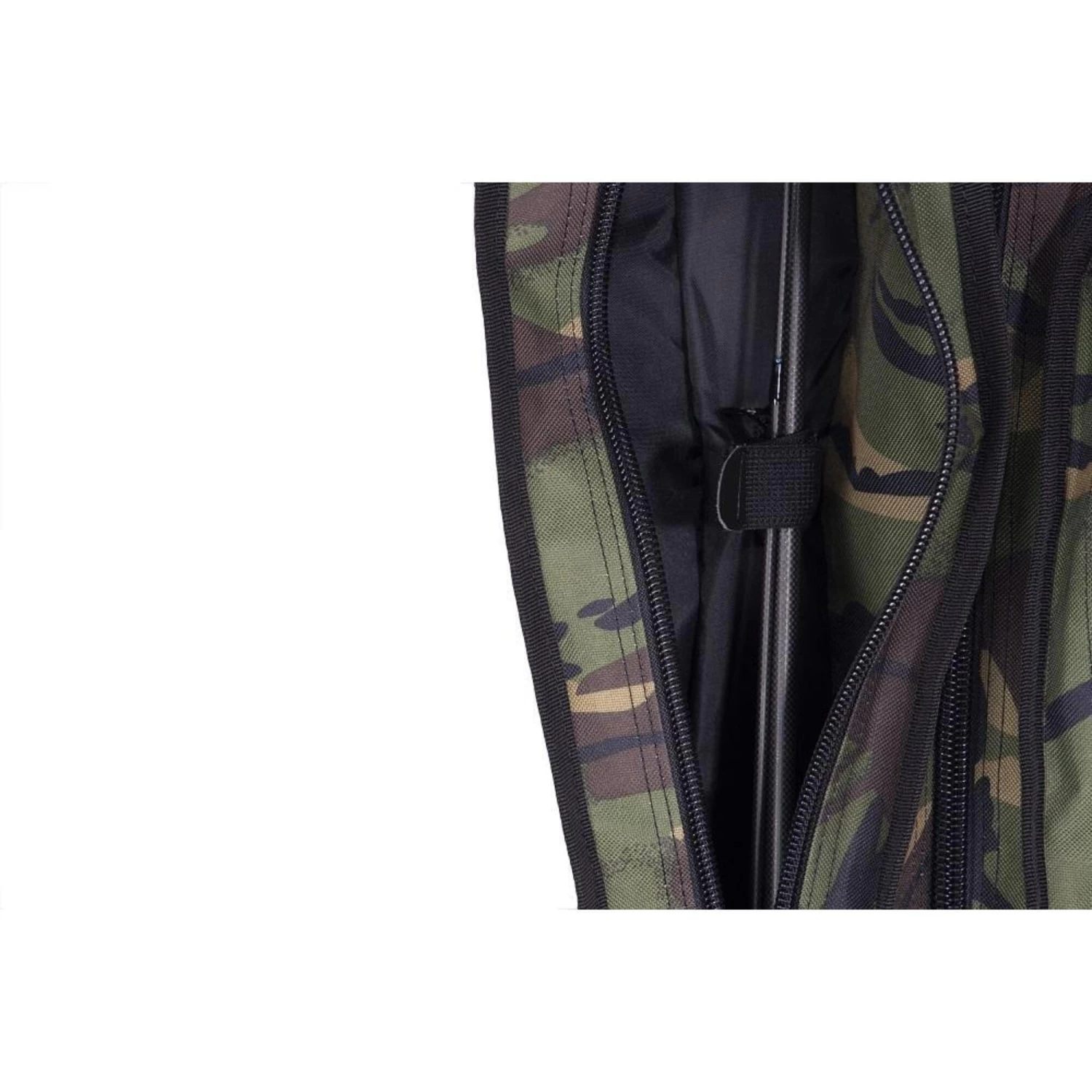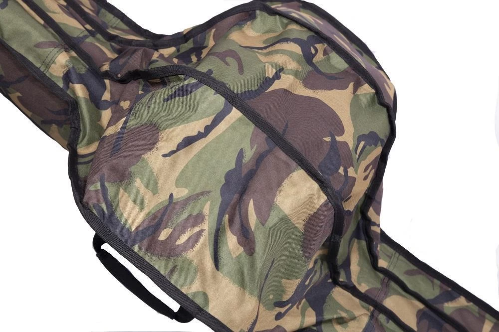Our standard rod sleeves are the perfect rod protection. Unlike most other two/three rod sleeves, our version offers separate compartments with individual zip sections for each rod. This ensures all rods are kept separate during transportation, however still kept together in a compact sleeve. It also provides extremely easy access when on the bank. The padded compartments house the biggest of big pit reels. External pockets accommodate landing nets, retainers and bank sticks. In our Cult 600D Camo fabric, they have been ergonomically designed to specifically house 50mm butt rings and the largest of big pit reels.