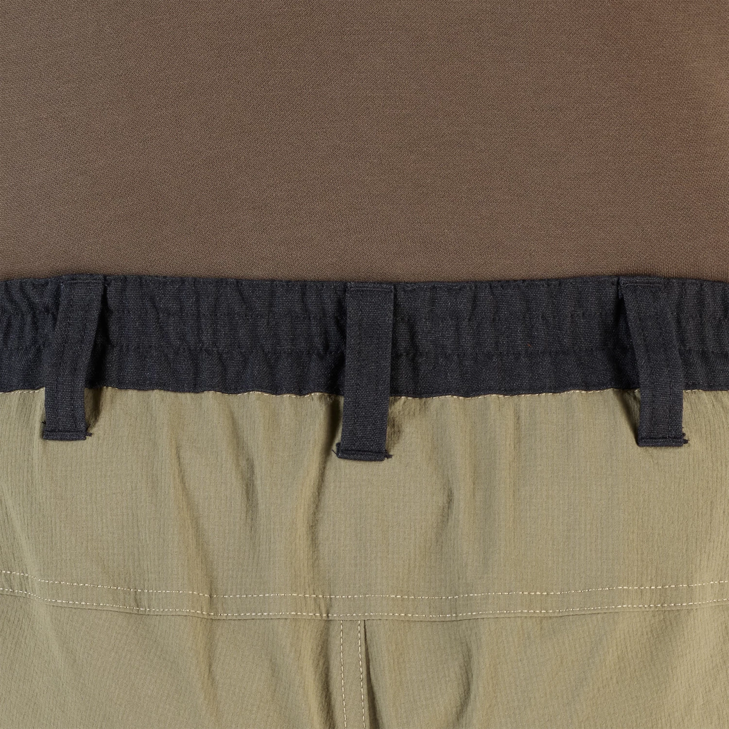 Lower legs reinforced with 269.2 gsm Dynamonous by Toray (93% Polyester, 7% DuPontTM Kevlar®) for great puncture and abrasion resistance against vegetation in hostile environments “DuPontTM and Kevlar® are the property of subsidiaries of DuPont de Nemours, Inc.”