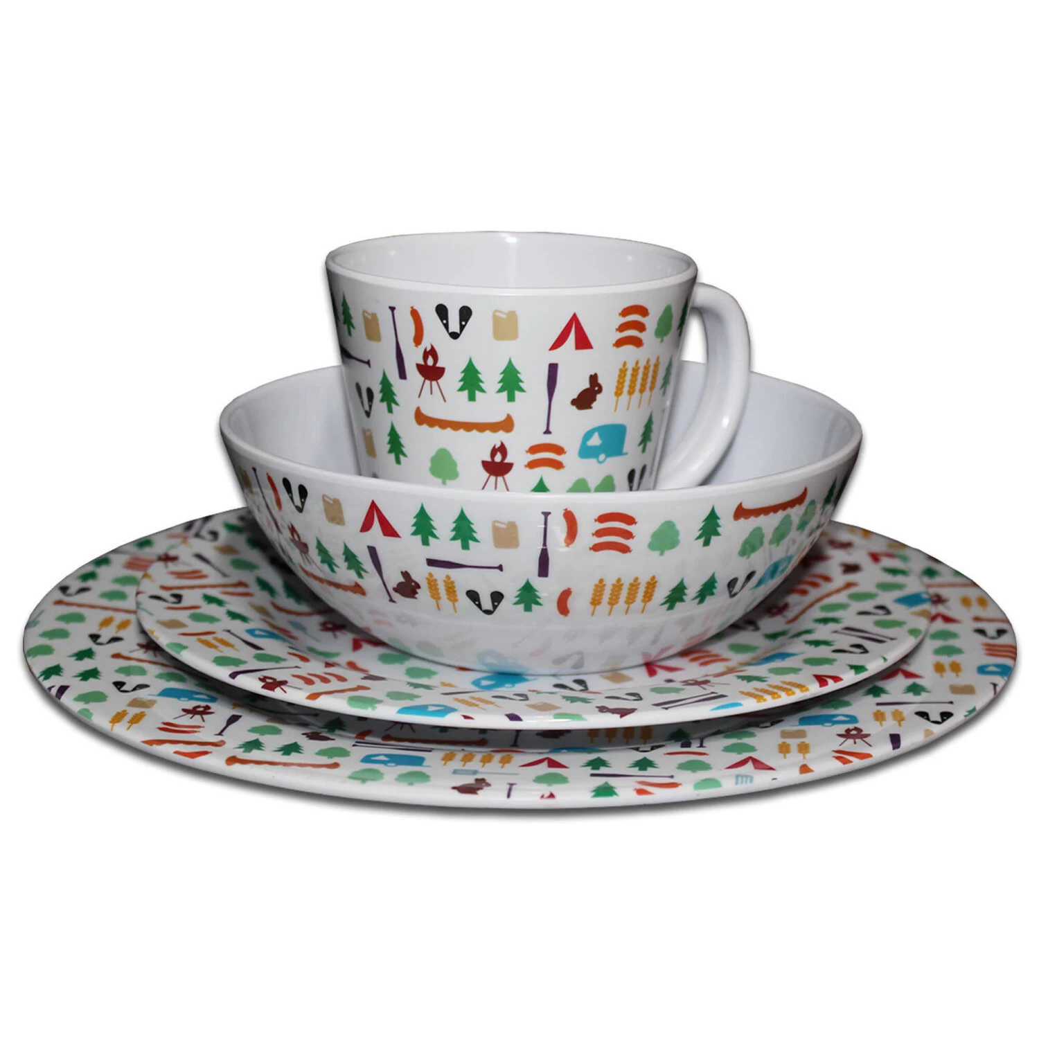 Add more colour to your travels with the 8 Piece Berrow Hill Melamine Set. The striking Berrow Hill Melamine Set captures the Great British Outdoors with its bright and colourful design. Caravans, Tents and other images cover this 100% Melamine Set designed by OLPRO. This is a unique design for people who are looking for the best looking melamine set available. Using melamine as opposed to other plates, bowls and mugs means a lot less broken crockery when travelling and also stops accidents in the garden or out on campsites when people drop or knock over bowls, mugs or plates.