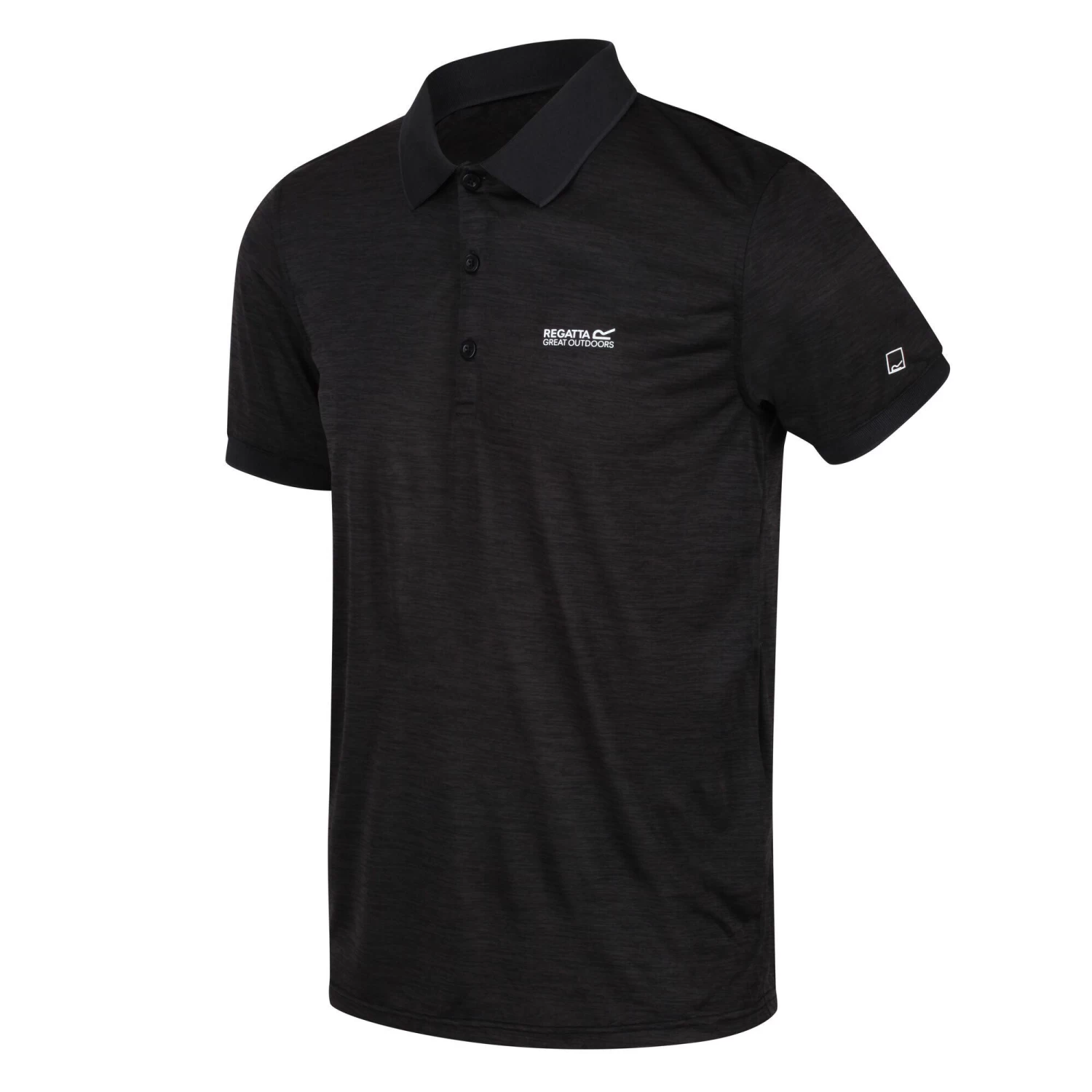 Short sleeve polo shirt in sweat-wicking, quick-drying jersey fabric. For summit hikes, pitch and put or coastal walks. The soft-touch marl polyester fabric provides cooling airflow and is soft-to-wear. Cut with a classic three-button fastening and lightly ribbed collar and cuffs. With the signature Regatta print on the chest.