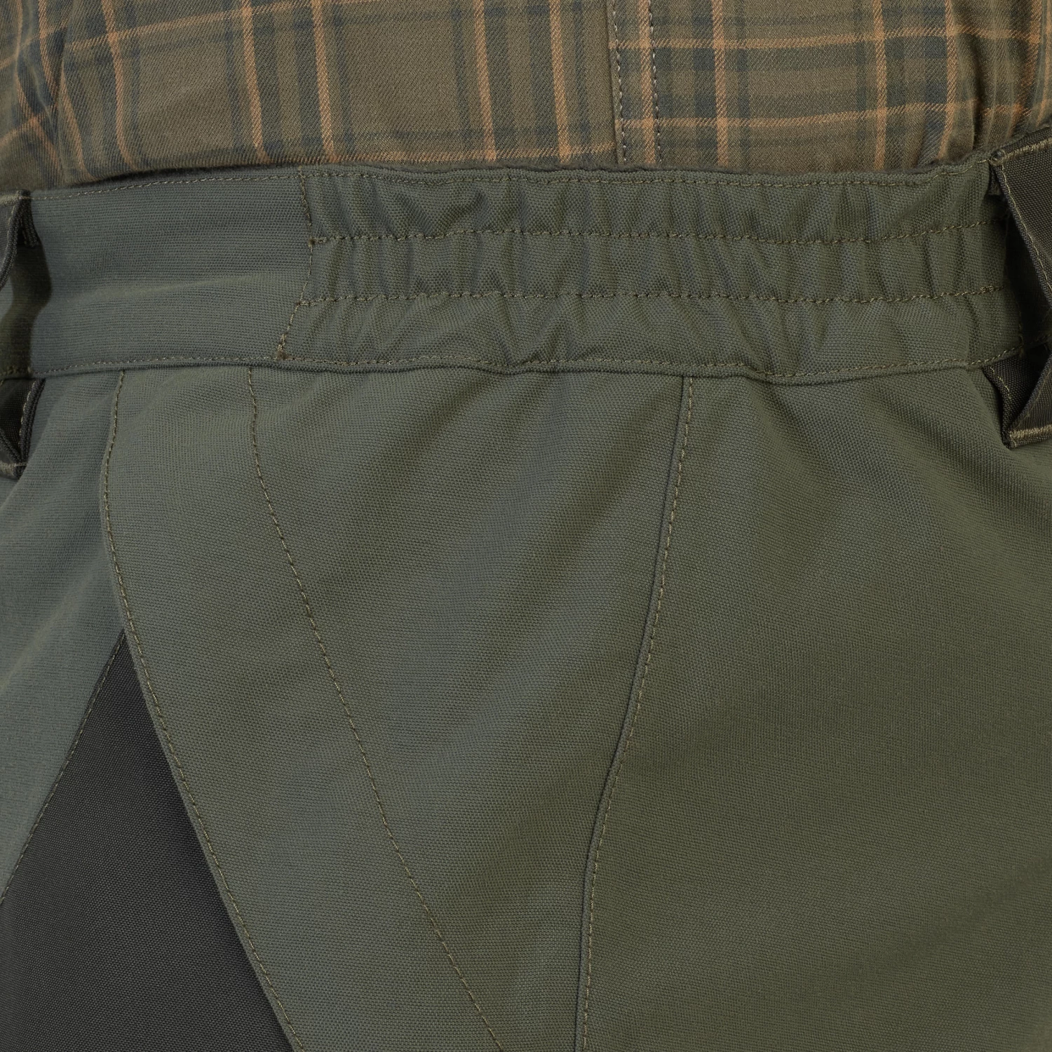 In terms of design, we have prioritised the essential features: there are of course 2 waterproof hand pockets (with a 3 cm wide flap to protect the zip fastener from the rain), as well as a pocket on the right leg with a waterproof zip. The trousers have 5 belt loops, and are higher at the back to protect the lumbar region when hunting.