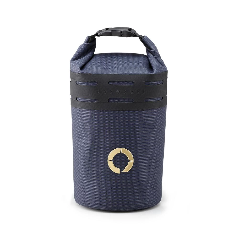 This bag securely retains a large bottle, snacks, or other accessories, while still providing the option of being rolled for extreme weather protection. It can be fitted to either side of the stem/handlebars, or to one of the larger Roswheel packs.