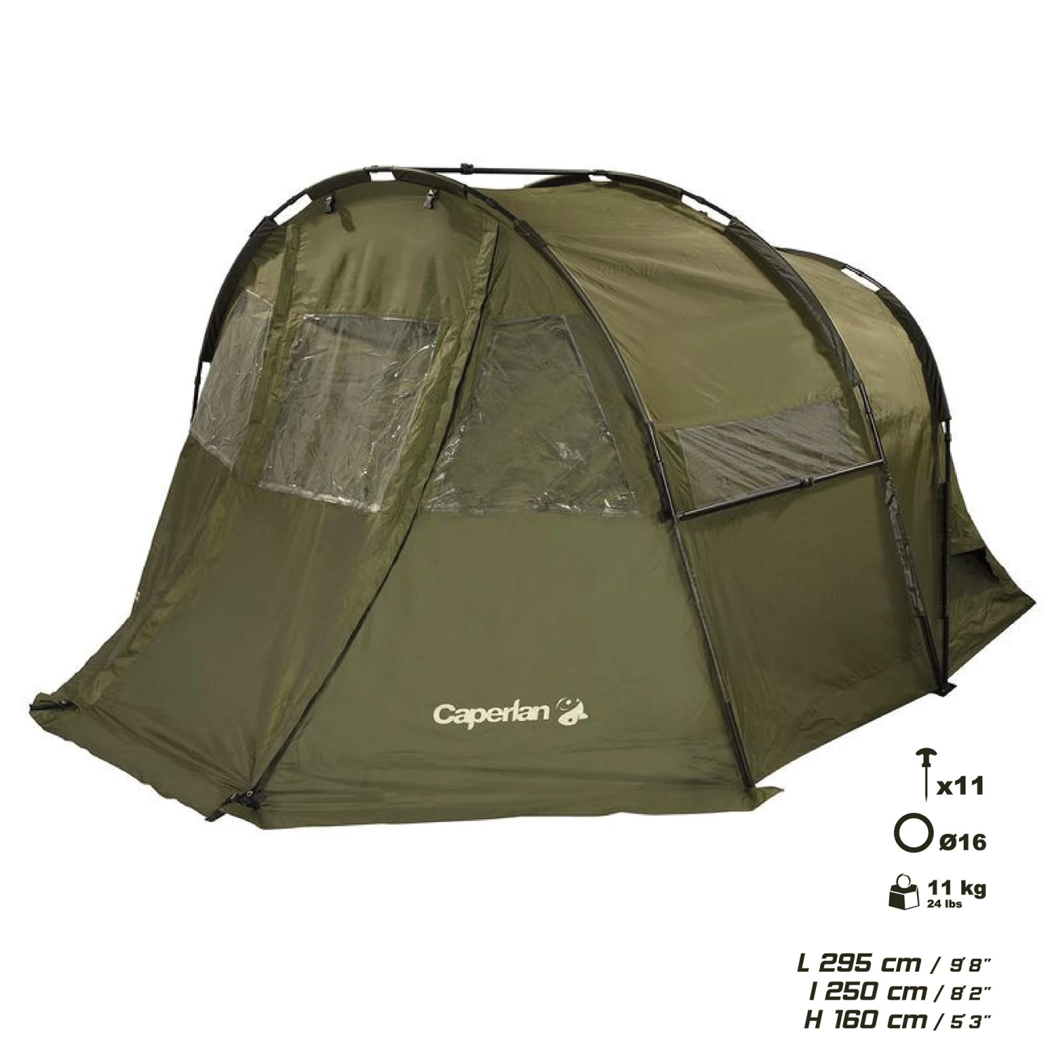 6 windows enable observing the activity of the fish from your bedchair and enjoy the atmosphere of your post. There are 3 on the front door. There is one on each side and one on the back. You have the option of closing them to block out the daylight. The back window is a mosquito net enabling both ventilation and protection from possible mosquitoes.
